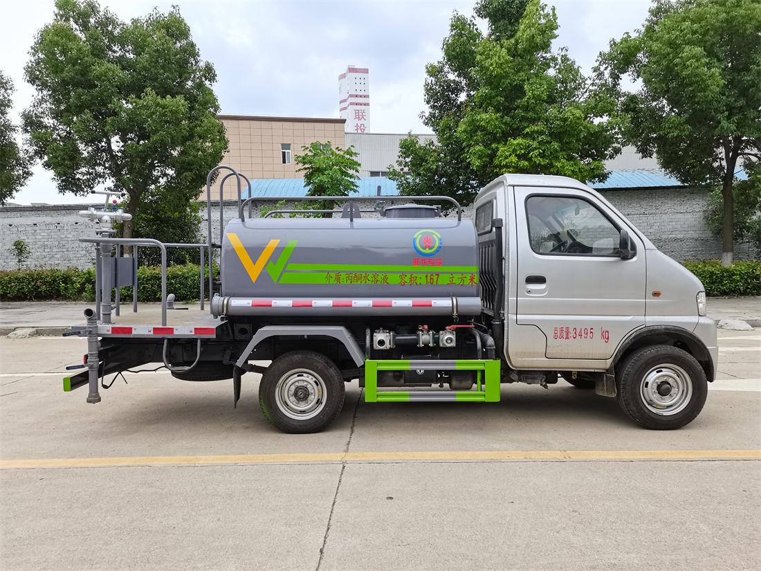 灑水車前裝有鴨形噴嘴或圓頭沖嘴,后面裝有圓柱開灑水噴嘴或蓮蓬頭噴嘴,后部有一工作平臺,裝配有水炮。后部還可裝8個噴嘴(選裝)。