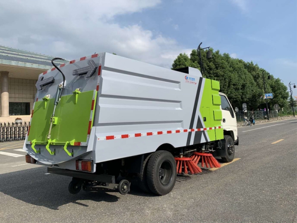 1.采用吸掃混合的方式收集垃圾,濕式除塵、電液,液壓傾翻卸料的作業方式對路面進行清掃作業。