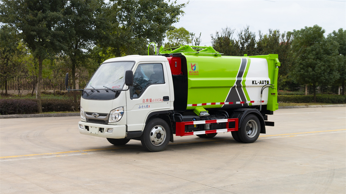 5方掛桶垃圾車-福田小卡3藍牌側(cè)裝壓縮掛桶垃圾車廠家