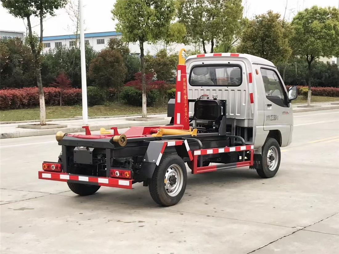 勾臂式垃圾車(車廂可卸式垃圾車)介紹: 車廂可卸式垃圾車又叫拉臂式垃圾車,是一種采用高新設計可伸縮的鉤臂,實現垃圾廂的二次吊裝,自吊上放下,可自行傾倒垃圾的環衛設備。 拉臂式垃圾車結構簡單,操作穩定方便,裝卸效率高,機械化程度高,節省人力。鉤臂垃圾車一車可帶多個垃圾廂,在裝卸的運輸過程中可有效地避免二次污染。 拉臂垃圾車采用高新設計可擺動的鉤臂,垃圾箱由框架、開啟油缸、滑輪、后門和若干加強框架與鋼板焊接而成。調換貨廂快捷方便,貨廂上帶蓋(倒垃圾時可翻開),鉤臂垃圾車垃圾廂體可選用碳鋼、不銹鋼材質、內部采取環氧樹脂防腐處理,改裝部分與原車底盤為可分離式,維修方便且保持了原車的機動性及行駛性能。
