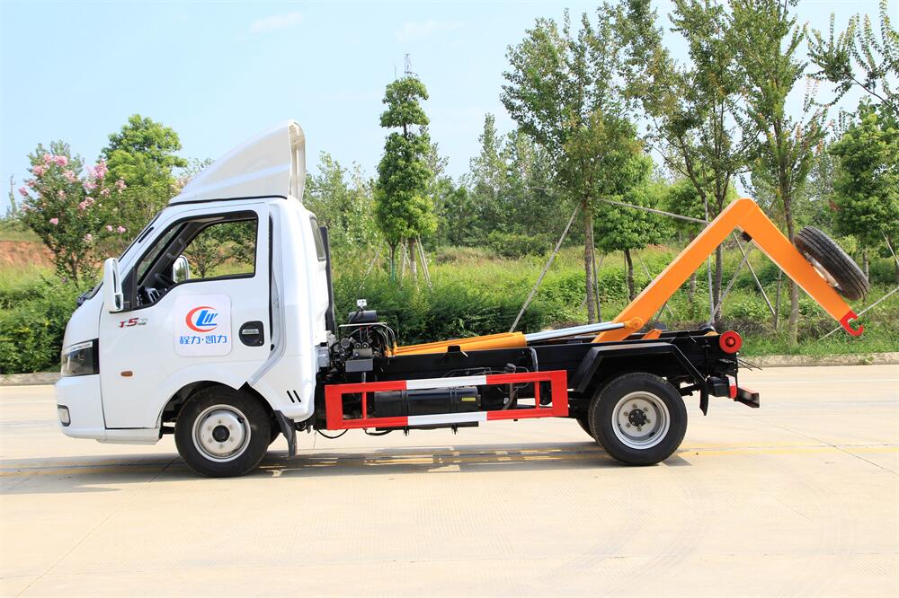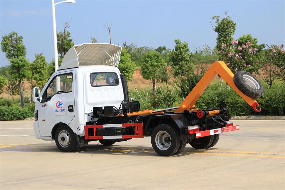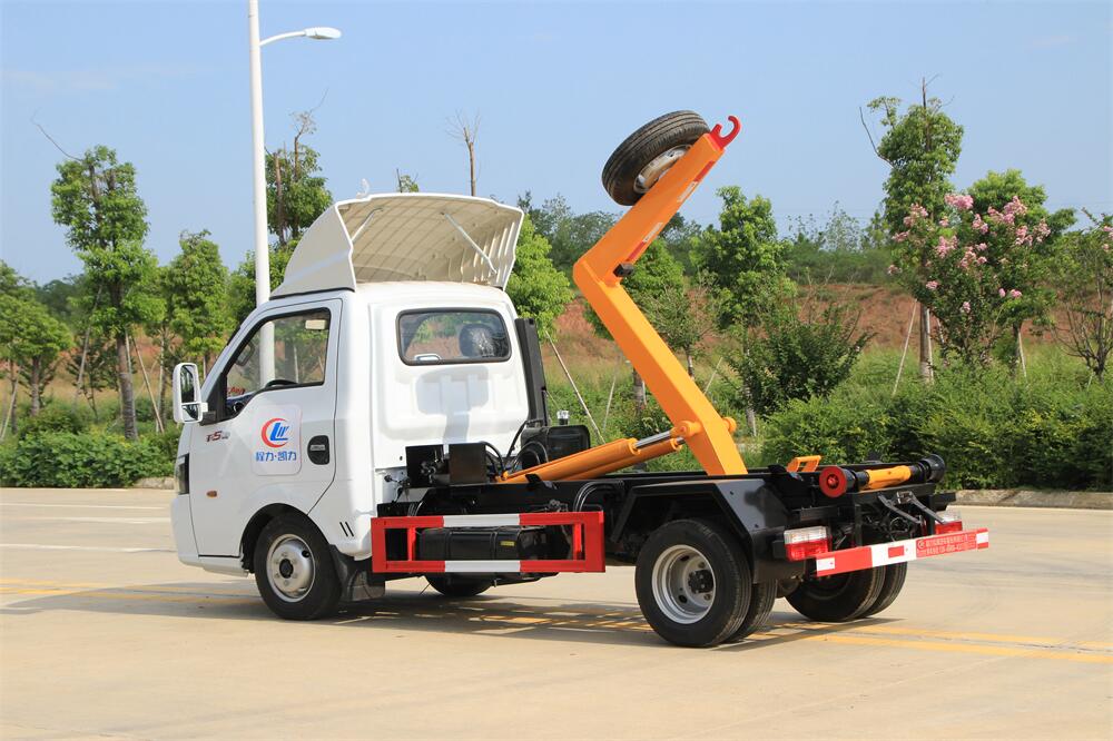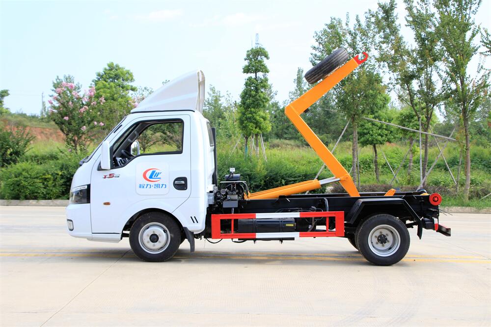 勾臂式垃圾車(chē)(車(chē)廂可卸式垃圾車(chē))介紹: 車(chē)廂可卸式垃圾車(chē)又叫拉臂式垃圾車(chē),是一種采用高新設(shè)計(jì)可伸縮的鉤臂,實(shí)現(xiàn)垃圾廂的二次吊裝,自吊上放下,可自行傾倒垃圾的環(huán)衛(wèi)設(shè)備。 拉臂式垃圾車(chē)結(jié)構(gòu)簡(jiǎn)單,操作穩(wěn)定方便,裝卸效率高,機(jī)械化程度高,節(jié)省人力。鉤臂垃圾車(chē)一車(chē)可帶多個(gè)垃圾廂,在裝卸的運(yùn)輸過(guò)程中可有效地避免二次污染。 拉臂垃圾車(chē)采用高新設(shè)計(jì)可擺動(dòng)的鉤臂,垃圾箱由框架、開(kāi)啟油缸、滑輪、后門(mén)和若干加強(qiáng)框架與鋼板焊接而成。調(diào)換貨廂快捷方便,貨廂上帶蓋(倒垃圾時(shí)可翻開(kāi)),鉤臂垃圾車(chē)?yán)鴰w可選用碳鋼、不銹鋼材質(zhì)、內(nèi)部采取環(huán)氧樹(shù)脂防腐處理,改裝部分與原車(chē)底盤(pán)為可分離式,維修方便且保持了原車(chē)的機(jī)動(dòng)性及行駛性能。