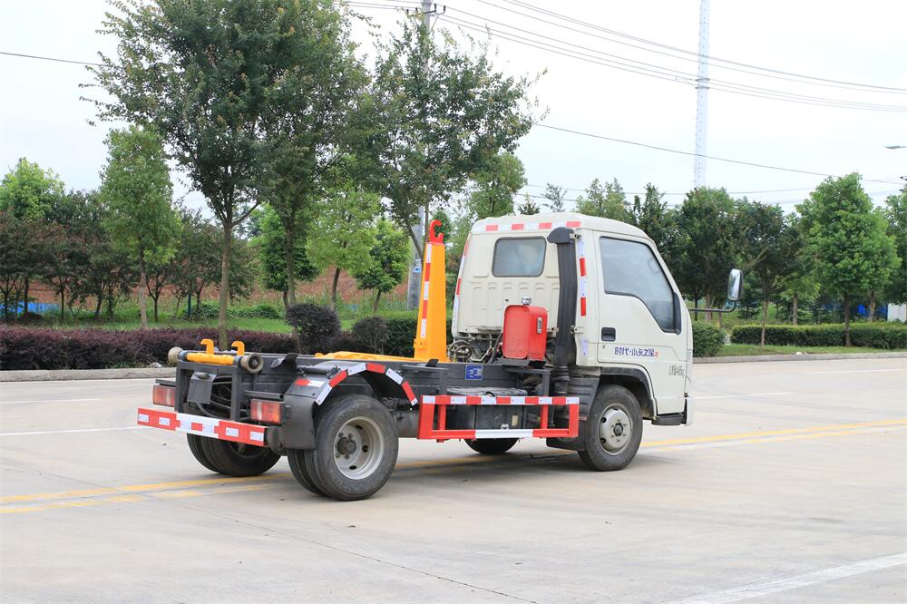 勾臂式垃圾車(車廂可卸式垃圾車)介紹: 車廂可卸式垃圾車又叫拉臂式垃圾車,是一種采用高新設(shè)計(jì)可伸縮的鉤臂,實(shí)現(xiàn)垃圾廂的二次吊裝,自吊上放下,可自行傾倒垃圾的環(huán)衛(wèi)設(shè)備。 拉臂式垃圾車結(jié)構(gòu)簡(jiǎn)單,操作穩(wěn)定方便,裝卸效率高,機(jī)械化程度高,節(jié)省人力。鉤臂垃圾車一車可帶多個(gè)垃圾廂,在裝卸的運(yùn)輸過程中可有效地避免二次污染。 拉臂垃圾車采用高新設(shè)計(jì)可擺動(dòng)的鉤臂,垃圾箱由框架、開啟油缸、滑輪、后門和若干加強(qiáng)框架與鋼板焊接而成。調(diào)換貨廂快捷方便,貨廂上帶蓋(倒垃圾時(shí)可翻開),鉤臂垃圾車?yán)鴰w可選用碳鋼、不銹鋼材質(zhì)、內(nèi)部采取環(huán)氧樹脂防腐處理,改裝部分與原車底盤為可分離式,維修方便且保持了原車的機(jī)動(dòng)性及行駛性能。