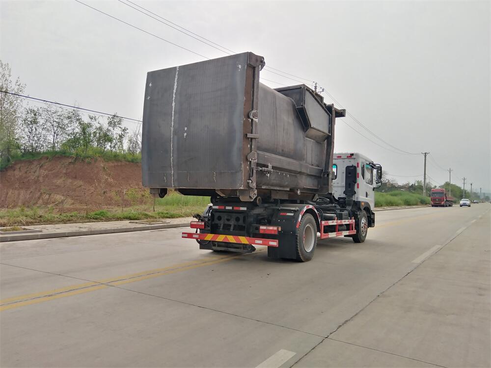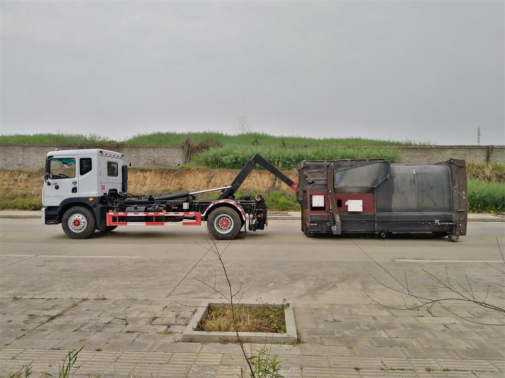 勾臂式垃圾車(車廂可卸式垃圾車)介紹: 車廂可卸式垃圾車又叫拉臂式垃圾車,是一種采用高新設計可伸縮的鉤臂,實現垃圾廂的二次吊裝,自吊上放下,可自行傾倒垃圾的環衛設備。 拉臂式垃圾車結構簡單,操作穩定方便,裝卸效率高,機械化程度高,節省人力。鉤臂垃圾車一車可帶多個垃圾廂,在裝卸的運輸過程中可有效地避免二次污染。 拉臂垃圾車采用高新設計可擺動的鉤臂,垃圾箱由框架、開啟油缸、滑輪、后門和若干加強框架與鋼板焊接而成。調換貨廂快捷方便,貨廂上帶蓋(倒垃圾時可翻開),鉤臂垃圾車垃圾廂體可選用碳鋼、不銹鋼材質、內部采取環氧樹脂防腐處理,改裝部分與原車底盤為可分離式,維修方便且保持了原車的機動性及行駛性能。