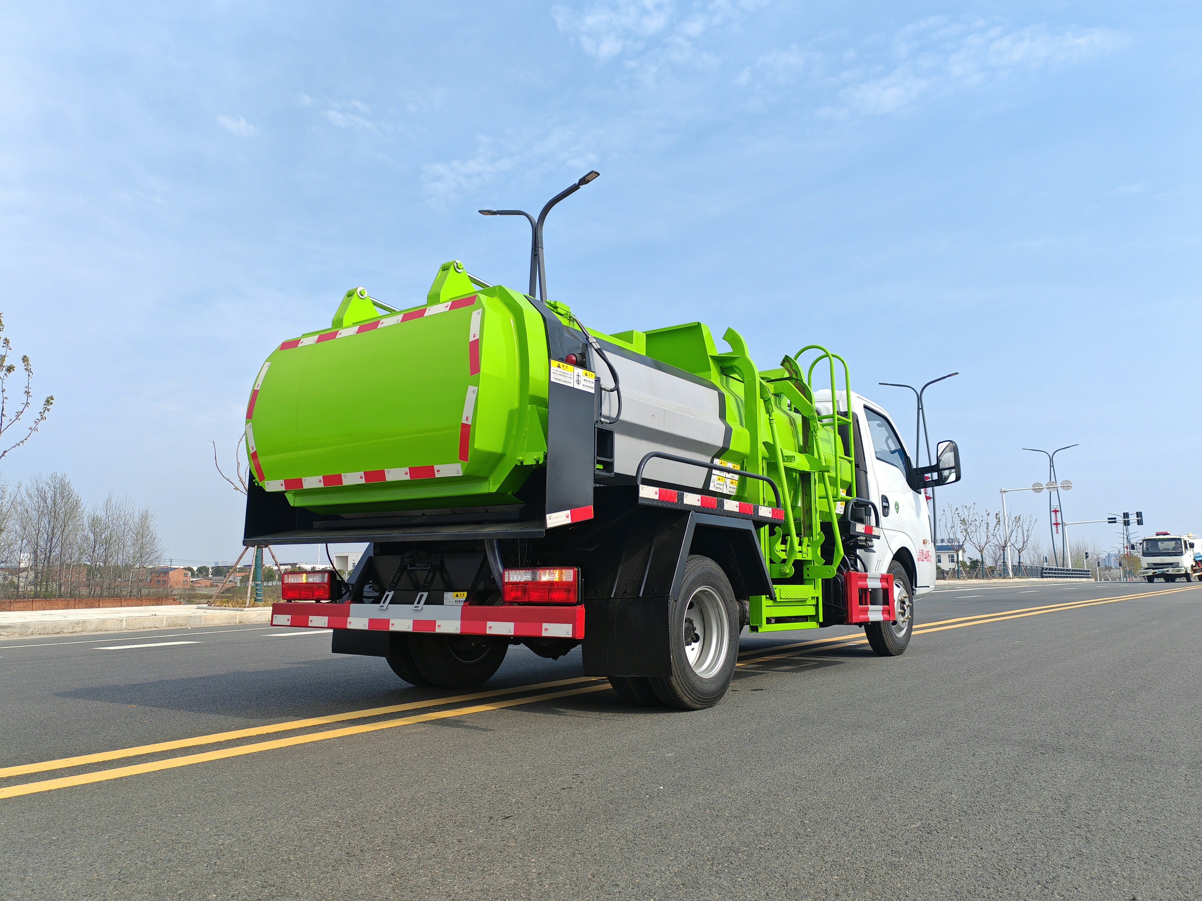 上裝配置:采用Q710高強(qiáng)鋼,邊2底4,輕量化設(shè)計(jì),大容量,上藍(lán)牌,不超重,高度可選可進(jìn)地下室高度。加強(qiáng)型方形罐體,采用國內(nèi)知名品牌液壓系統(tǒng)(國產(chǎn)知名油泵、湖南長沙國產(chǎn)知名多路閥、餐廚專用定制油缸、浙江嘉善取力器),①選裝拉桿或鏈條式提升機(jī),可掛120L/240L標(biāo)準(zhǔn)塑料垃圾桶。②后蓋液壓開啟、液壓鎖緊,后蓋帶有密封條,搭配插銷可調(diào)節(jié)式液壓鎖緊保證滴水不漏。③中置雙頂舉升卸料,卸料角度可根據(jù)需求調(diào)節(jié)。④帶無線遙控操作更方便。