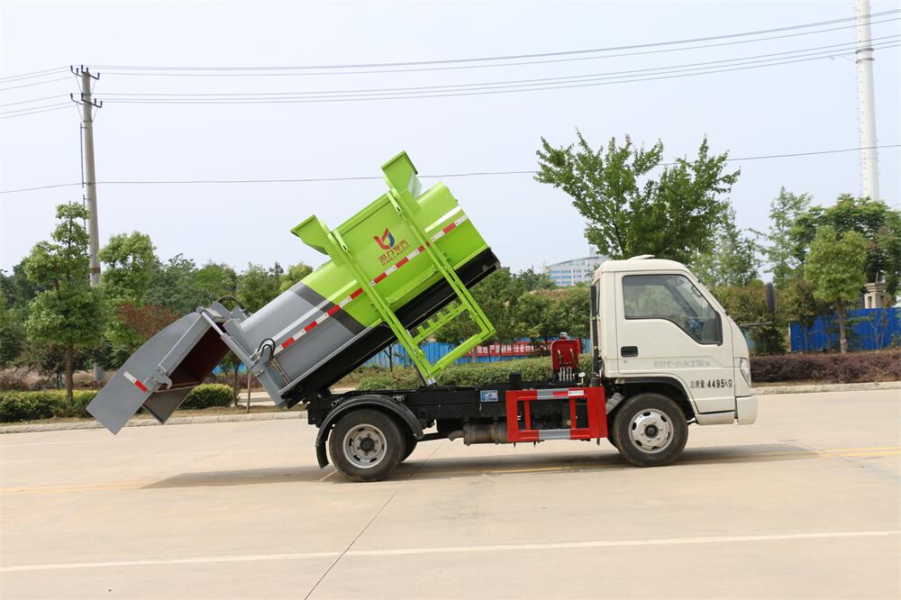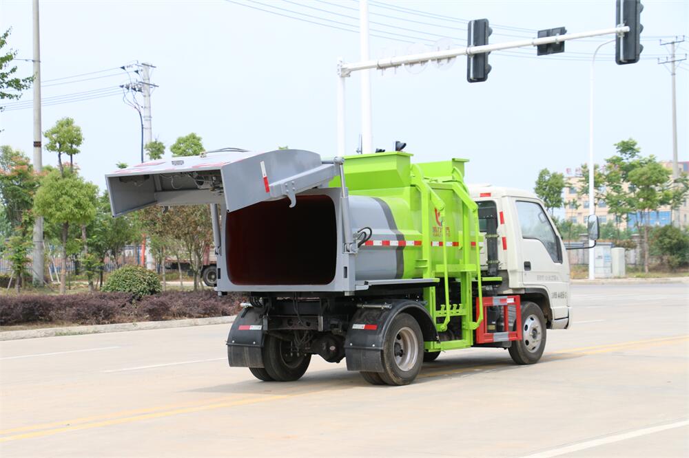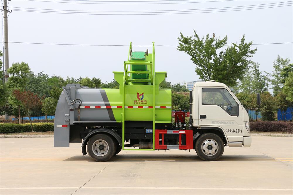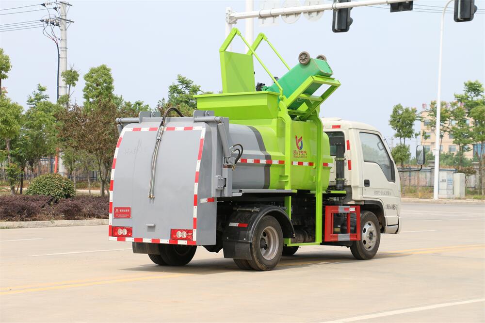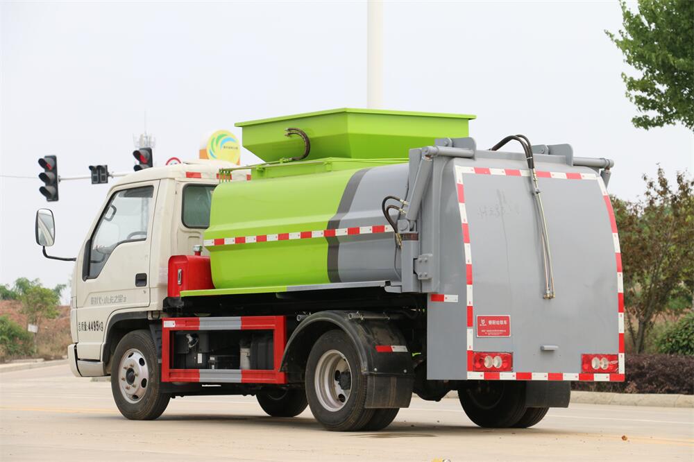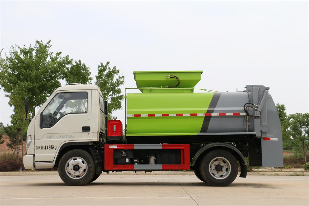上裝配置:罐體容積4m3,配備120L/240L掛桶提升翻轉機構,液壓系統,后蓋液壓鎖緊開啟,罐體可以舉升自卸,尾部帶自流閥;用于運輸液態垃圾,其特點操作簡單,密封性好,無泄漏,無異味;可選裝固液分離功能,推板擠壓功能,常用于餐館的垃圾轉運處理。