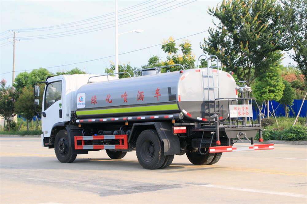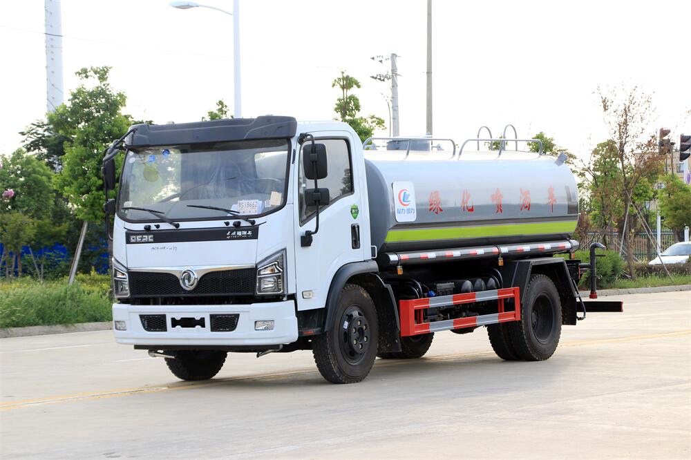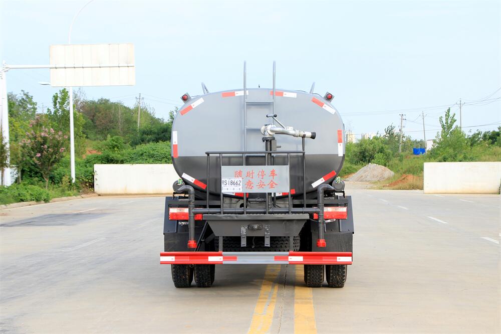灑水車前裝有鴨形噴嘴或圓頭沖嘴,后面裝有圓柱開灑水噴嘴或蓮蓬頭噴嘴,后部有一工作平臺,裝配有水炮。后部還可裝8個噴嘴(選裝)。