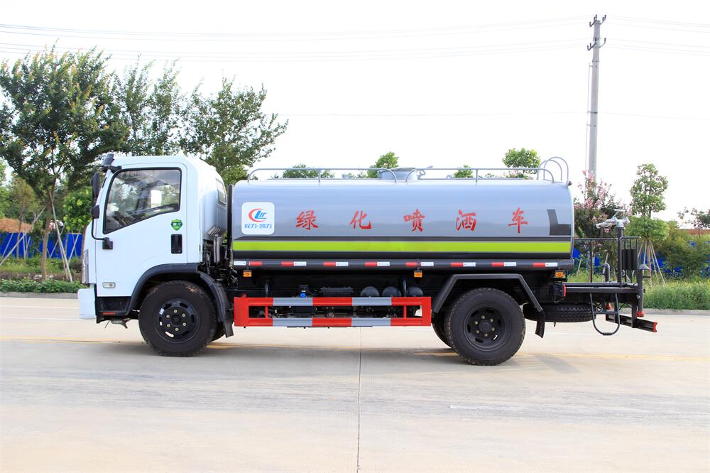 灑水車性能特點:前沖(噴)后灑,帶側噴,罐體后帶工作平臺,平臺上安裝綠化灑水炮,灑水炮可360旋轉,可連續調成直沖狀、大雨、小雨、毛毛雨,帶安全護欄,配備全國質量評比**名的杭州威龍大功率專用  灑水泵,泵可自吸自排,安裝過濾網,帶消防接口,可通過消防栓進水,帶自流閥,隨車選裝20米綠化卷盤,可噴灑農藥。
