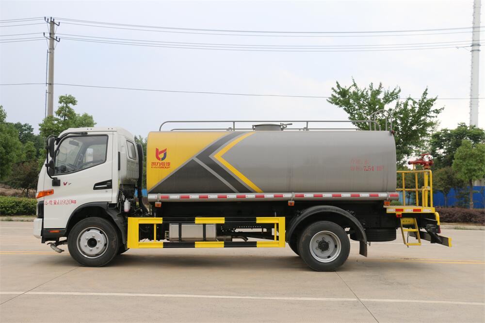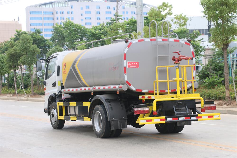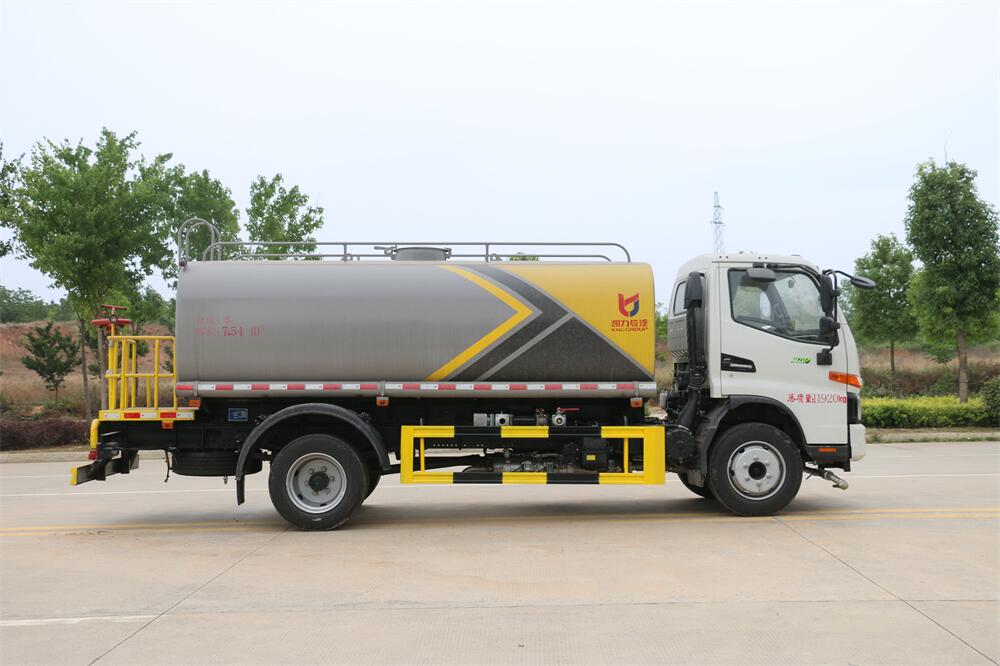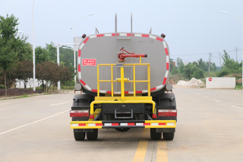 灑水車前裝有鴨形噴嘴或圓頭沖嘴,后面裝有圓柱開灑水噴嘴或蓮蓬頭噴嘴,后部有一工作平臺(tái),裝配有水炮。后部還可裝8個(gè)噴嘴(選裝)。