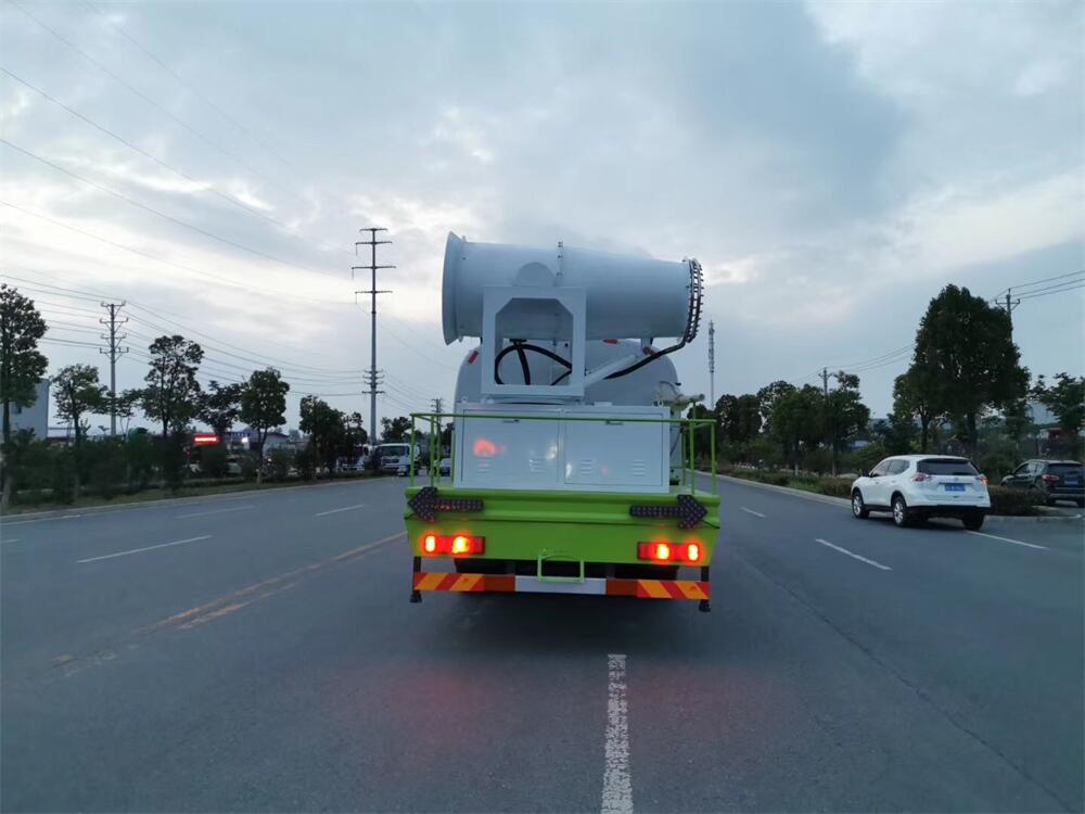 上裝配置:罐體容積為 16立方,選配風(fēng)送式霧炮機(jī)組射程30米、40米、50米、60米、80米、100米、120米霧炮,罐體鋼板為4mm碳鋼Q235材質(zhì),罐內(nèi)隔板具有防波作用,以減輕汽車行駛時(shí)罐體液體沖擊,罐體及整車外形尺寸按照公告。帶大功率專用灑水泵,泵可自吸自排,整車前沖、后灑、側(cè)噴、帶65消防接口,后平臺(tái)配CLW-50、CLW-60、CLW-80、CLW-100、CLW-120型風(fēng)送式霧炮機(jī)組;罐體前封頭配大功率柴油發(fā)電機(jī)組;前封頭帶水位計(jì),后平臺(tái)主管路帶1寸澆花接口,后爬梯。帶兩根輸水管及陰陽端。罐體顏色:銀/灰/綠,罐體兩側(cè)噴“多功能抑塵車”字樣,貼反光標(biāo)示。