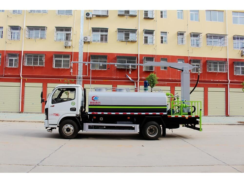 東風小多利卡抑塵固化劑噴灑車上裝配置:罐體為5立方圓形罐,罐體內部做防腐,帶加熱功能,前沖、后灑、側噴、高炮,抑塵噴灑桿(帶旋轉伸縮功能)。東風小多利卡抑塵固化劑噴灑車噴灑桿離地3.5-5米 ,后部平臺帶8KW副發電機組,罐體內部加兩個1.5KW電動馬達(帶攪拌功能)罐體噴漆上白下藍,平臺和噴灑桿藍色。遙控操作噴灑桿上下左右旋轉,國內知名品牌回轉支撐,大品牌油缸。