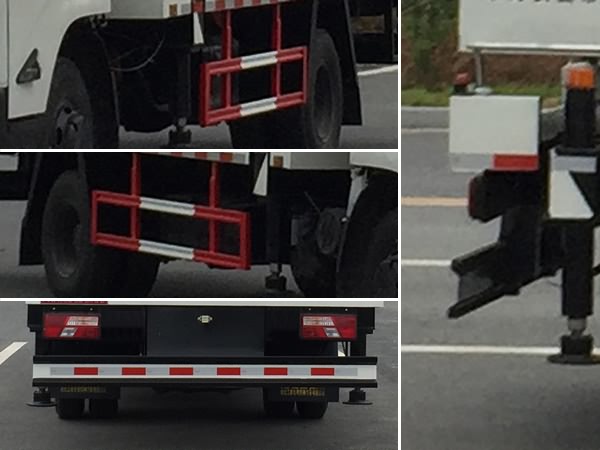 前伸:840mm,后伸:200mm;吊鉤為選裝件;隨底盤選裝駕駛室;側面防護及后下部防護裝置材料材質:Q235,連接方式:焊接加螺栓連接;后下部防護裝置斷面尺寸(寬贅?:30?00(mm),后下部防護裝置離地高度:470mm;ABS系統型號:VIE ABS-II,ABS系統生產廠家:上海萬捷汽車**系統有限公司.