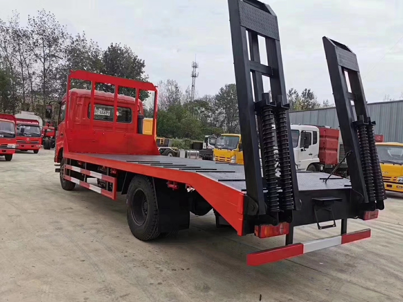 東風天錦單橋平板運輸車 天錦新款VR排半駕駛室 排放:國五新規 發動機:風神180馬力 變速箱:陜齒8檔 前后橋:145加強后橋 可選軸距:4.5/5米軸距 輪胎:900-20鋼絲胎(無備胎) 大梁:280雙層大梁 整車對應尺寸:8600/9000*2550*2800 車型亮點:ABS防抱死系統 . 剎車間隙自動調整臂、防飛濺、遙控鑰匙,電動門窗。 上裝采用五毫米花紋鋼板,100*100方鋼做橫梁,加強雙簧爬梯,可拉15噸以下挖機。 可選裝配置:液壓全自動爬梯,折疊型加長型液壓全自動爬梯,可加裝兩邊伸展,一邊可伸縮30公分。