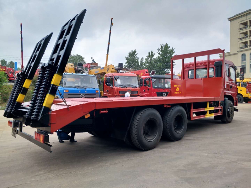 東風華神后八輪:270馬力,陜齒9檔,153加強后橋,軸距4350+1300,1100鋼絲胎,300雙層大梁,整車長:10200*2500*3250,可拉25噸以下挖機拖車。