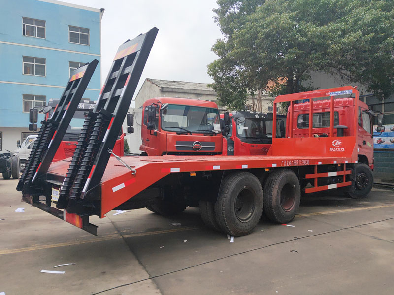 東風華神后八輪:240馬力,陜齒8檔,153加強后橋,軸距4350+1300,1100鋼絲胎,300雙層大梁,整車長:9890/10200*2500*3250,可拉25噸以下挖機拖車。